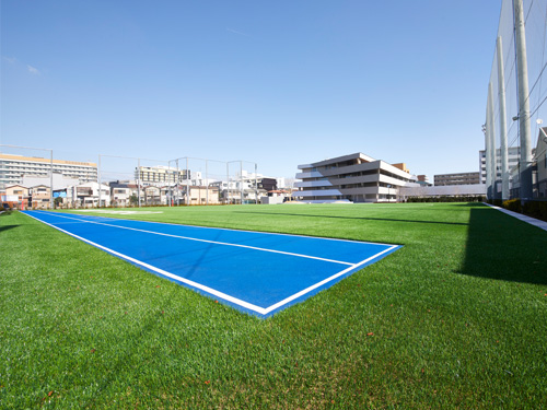安全性に優れた人工芝を採用しており、足首・膝などにかかる負担を軽減。表面温度の上昇を抑制する仕様とし、夏場でも快適な運動をサポートします。