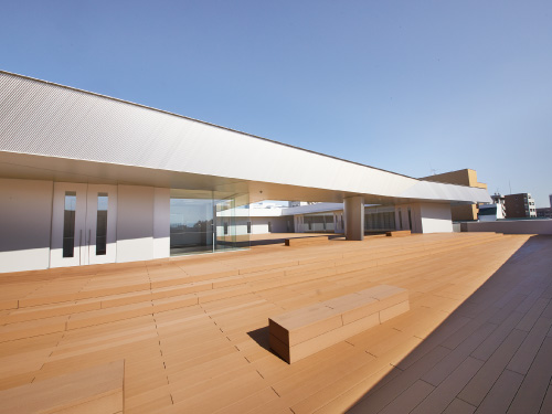 未来の学び舎を思わせる洗練された外観と、木を用いた温かみのある教室や廊下とのコントラストが、日々の学校生活を美しく、健やかに演出します。